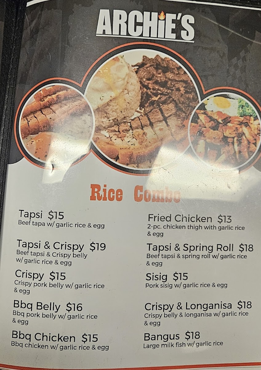 Welcome to Archie's - Surrey, a hidden gem located at 10180 153 St, Surrey. This cozy spot specializes in authentic Filipino cuisine, promising a delightful journey for your taste buds. With dishes like the Bangus—a large milkfish served with garlic rice at CA$19—and the mouthwatering Tapsilog, featuring marinated lean beef and an over-easy egg for CA$17, every meal is designed to satisfy.